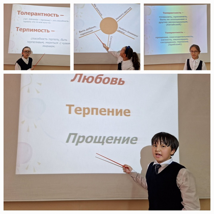 Толеранттылық онкүндігі аясында 4Ж сыныпта "біз толерантты боламыз" тақырыбында сынып сағаты өтті. Сынып жетекшісі Рахимова Г.Т.