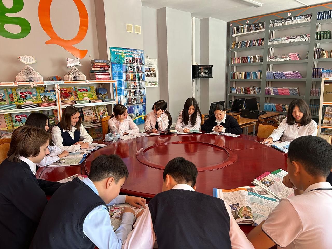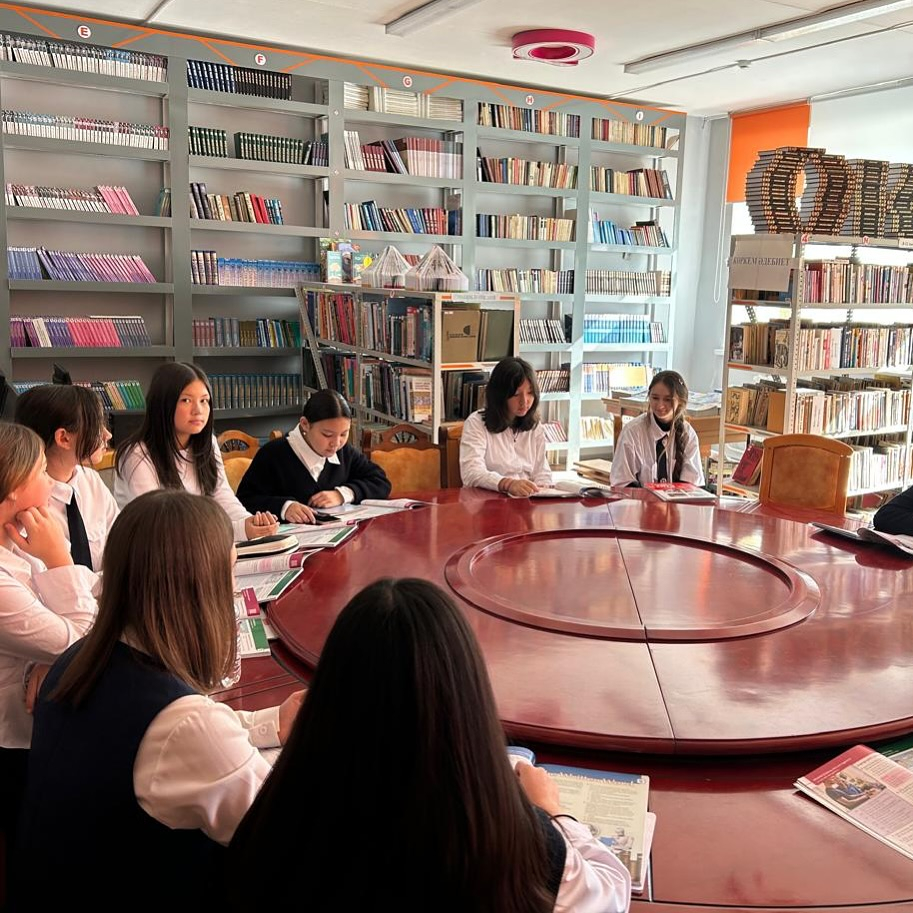 Мектеп кітапханасында 7 - сынып оқушыларымен “Оқуға құштар мектеп” республикалық жобасы аясында “Мен оқыған бір кітап” атты оқу сағаты өтті. Шараның мақсаты: оқушылардың кіта…