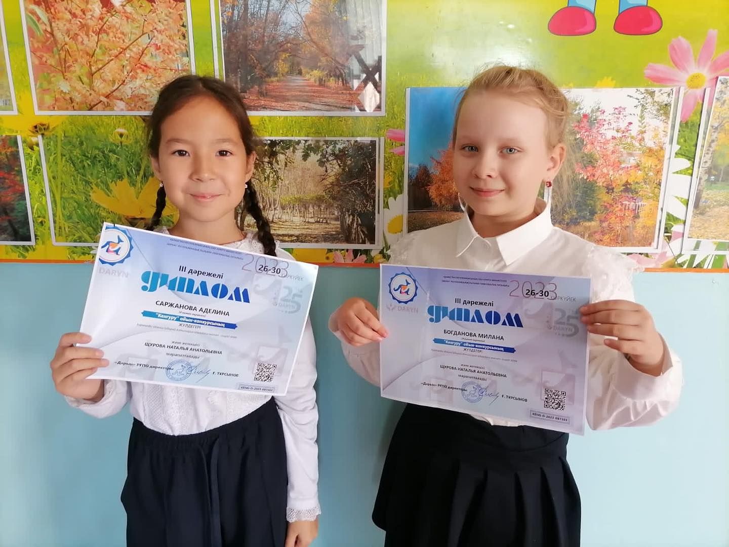 4 Д сынып оқушылары Богданов Милан мен Саржанов Аделин математикадан «Кенгуру» олимпиадасының жүлдегерлері атанды. Қыздарға одан әрі табыс пен жеңіс тілейміз!