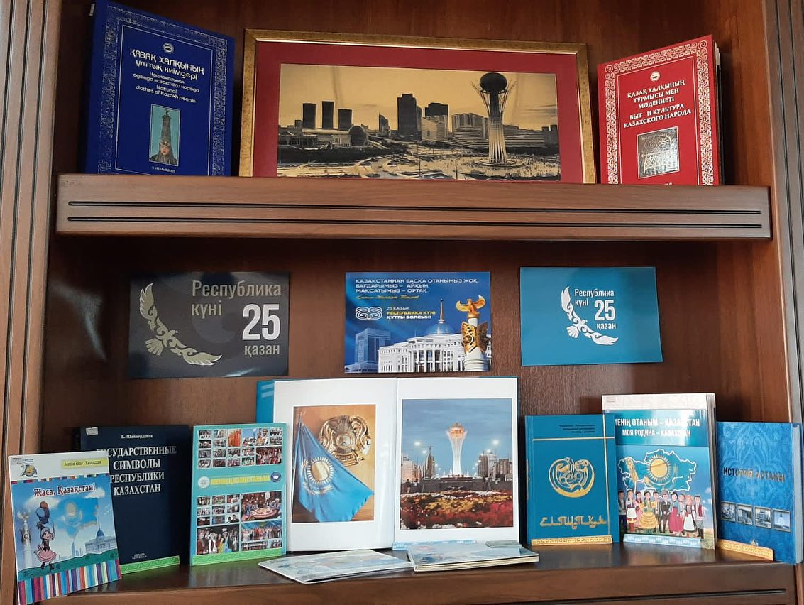 Мектеп кітапханасында 25-қазан Республика күніне орай «Менің елім-Қазақстан» атты кітап көрмесі ұйымдастырылды. Көрменің мақсаты: Қазақстанның егемендік алғаннан кейінгі қалыптасу тарих…