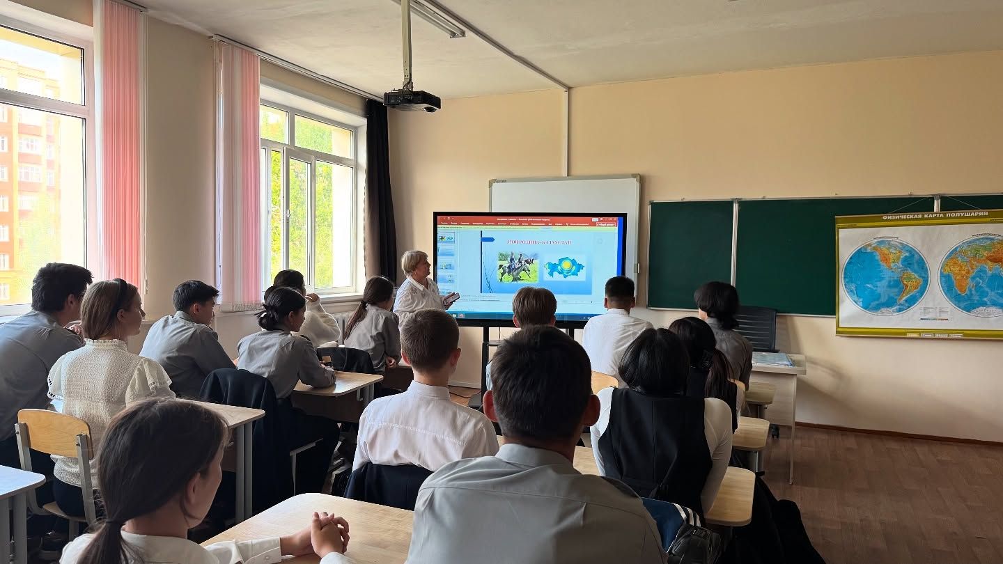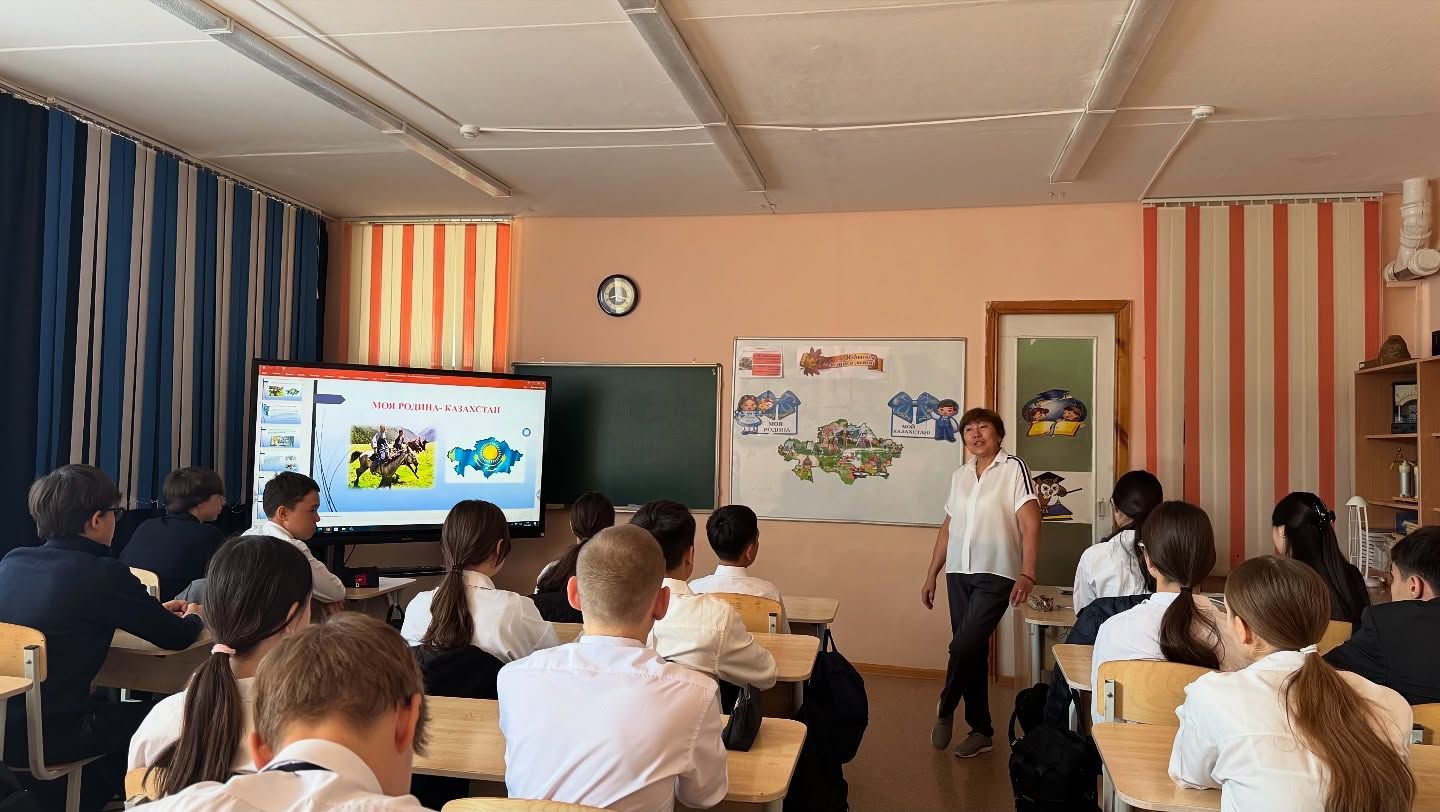 10 “б” сыныбында “Менің Отаным-Қазақстан!” тақырбында тәрбие сағаты өткізілді.