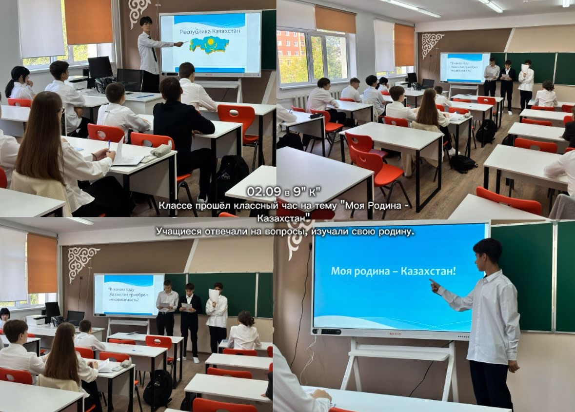 9 “К” сыныбында “Менің Отаным-Қазақстан!” тақырбында тәрбие сағаты өткізілді.