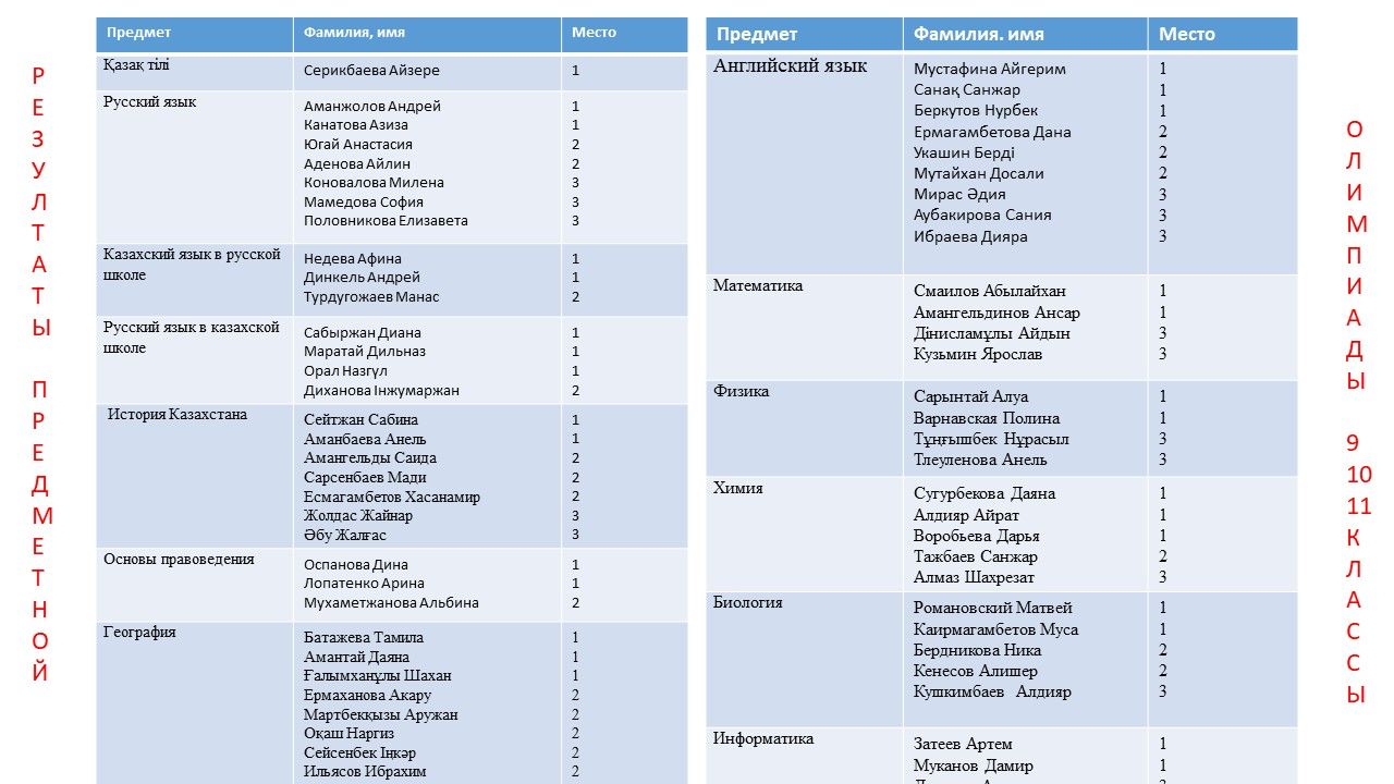 5-6, 7-8 және 9-11 сынып оқушыларына арналған пәндік олимпиадалардың бірінші кезеңі аяқталды.