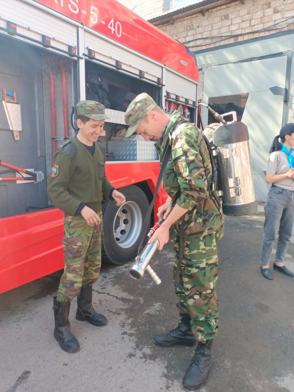 Балалар өрт сөндірушілердің жұмысымен танысты.