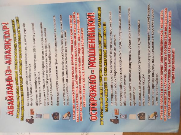 25 мая инспектором ГЮП Юго-Восточного ОП старшим лейтенантом полиции Ускембековой Улпан Бериковной с сотрудниками школы была проведена беседа о недопущении фактов интернет мошеничества, розданы памя…