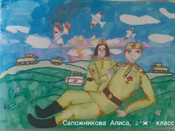 Рисунки выполненные к Дню Победы учащимися по кружку рисования " Палитра". Учитель Скорикова М.П.