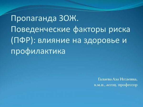 Пропаганда ЗОЖ.Поведенческие факторы риска (ПФР): влияние на здоровье и профилактика