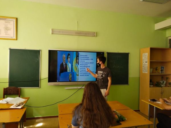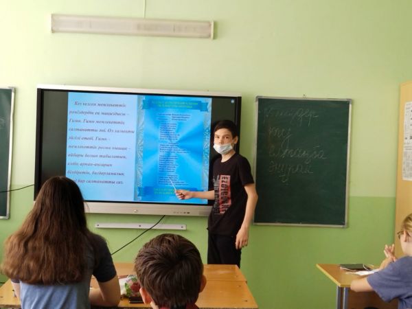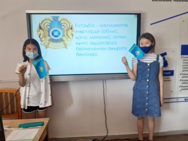 жазғы мектеп бағдарламасында 8 сынып оқушылары Қазақстан Республикасының рәміздері күніне арналған тақырыптық сабағында мемле…