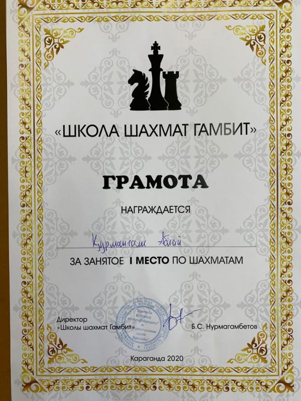 Ибраева Еркежан ученица 3 Д класса заняла ||| место в городском конкурсе по шахматам. В шахматном турнире приняли участие 26 человек. Победителям выдали свидетельство о присвоении lV разряда. Поздра…