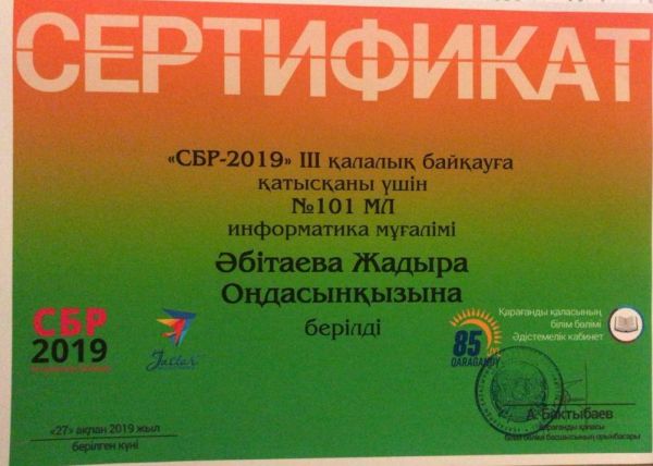 2019 жылдың қаңтар айында ІІІ қалалық сандық білім беру ресурстары конкурсының сырттай кезеңі өткізілді, оған информатика мұғалімі Ж. О. Әбітаева және орыс тілі мен әдебиеті мұғалімі Б. Е. Умирзаков…
