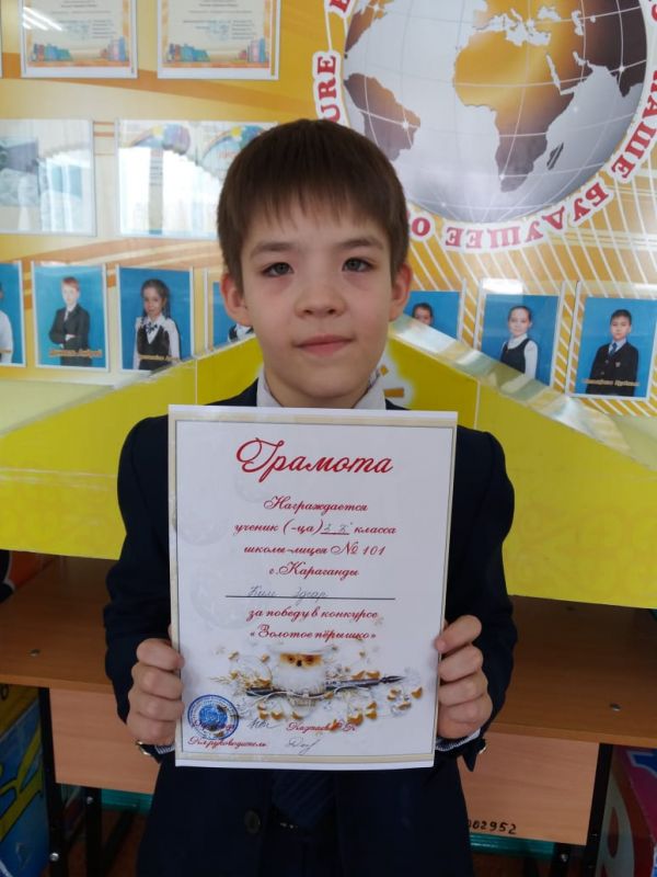 3 "К" сыныбының оқушысы Ким Эдгарды "Золотое перышко"сайысындағы жеңісімен құттықтаймыз.