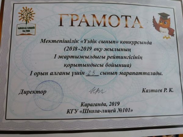 I жартыжылдық қорытындысы бойынша 3-4 сыныптар арасында оқу және тәрбие рейтингісінен жоғары көрсеткіш көрсетіп, ГРАНПРИИ-ге ие болған 4 «А» сыныбын және сынып жетекшісі Гульб…