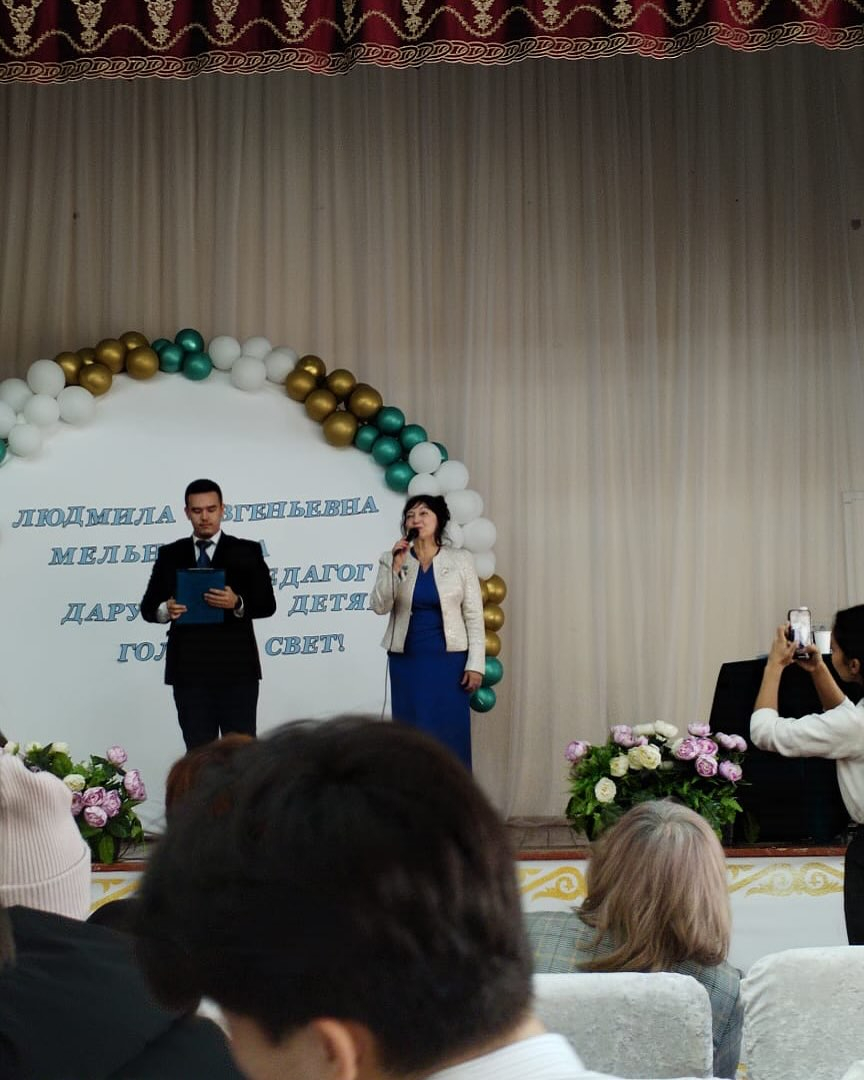Кеше мектеп оқушылары. С. Алтынсарин композитор Л. Е. Мельникованың мерейтойына қатысты.