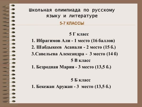 Итоги предметной олимпиады по русскому языку в 7 классах.