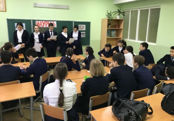 12. 03. в 8 Г классе (кл. рук. Даукишева Ж. А. ) был проведен классный час, посвященный весеннему празднику - Наурыз.