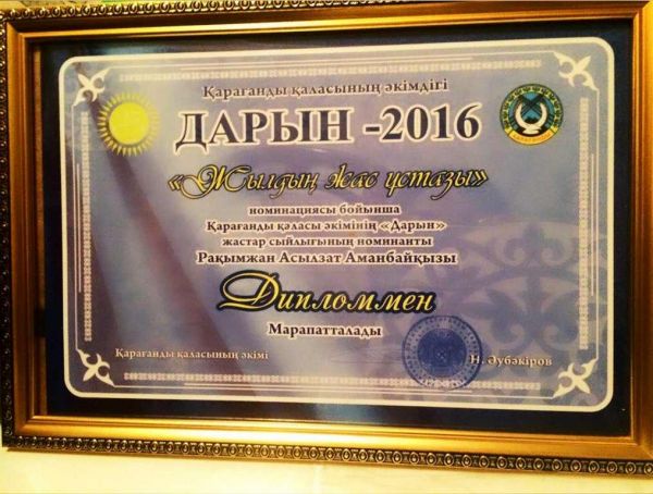 Мектебіміздің информатика пәні мұғалімі Рақымжан Асылзат Аманбайықызы, Қарағанды қаласы әкімінің ДАРЫН-2016 «Жылдың жас ұстазы» номинациясы бойынша Қарағанды қаласы әкімінің «…