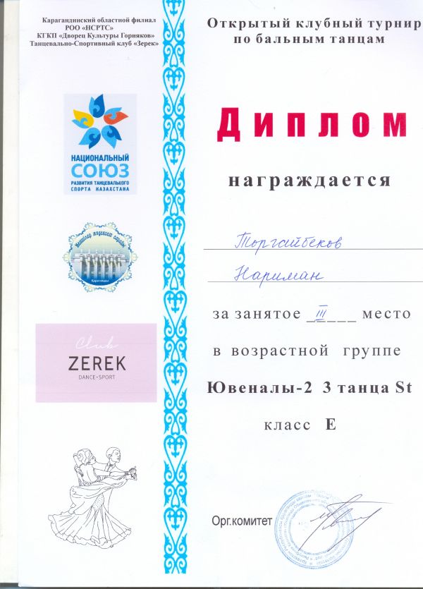 №101 мектеп-лицейінің 4В сынып оқушысы Торғайбеков Нариман Алматы қаласында ұлдар арасында суға секіруден өткен ҚР чемпионатында 3-орын және Қарағанды қаласында «Зерек» би спорттық клубы…