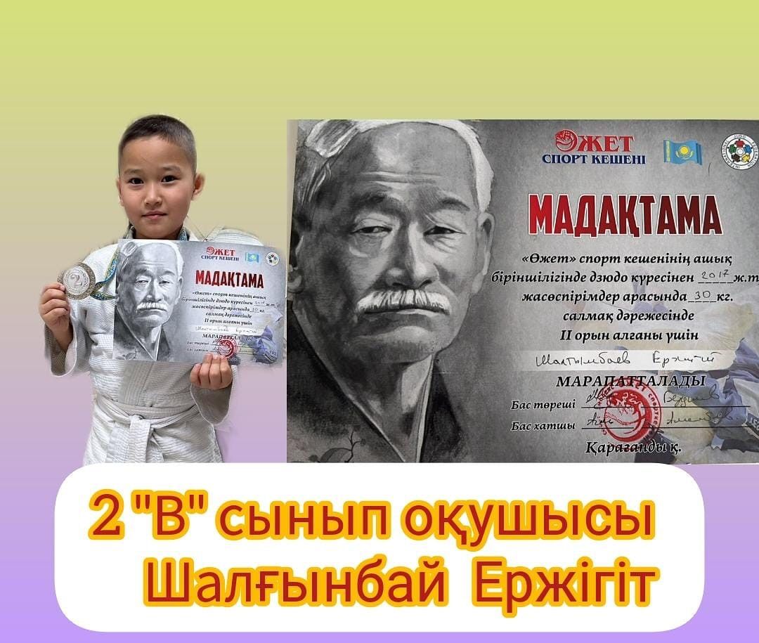 Ученик 2 «В» класса Шалгынбай Ержигит занял 2 место по борьбе дзюдо на открытом первенстве спорткомплекса «Ожет» ко Дню Независимости. Пусть свет отвечает на его требования.…