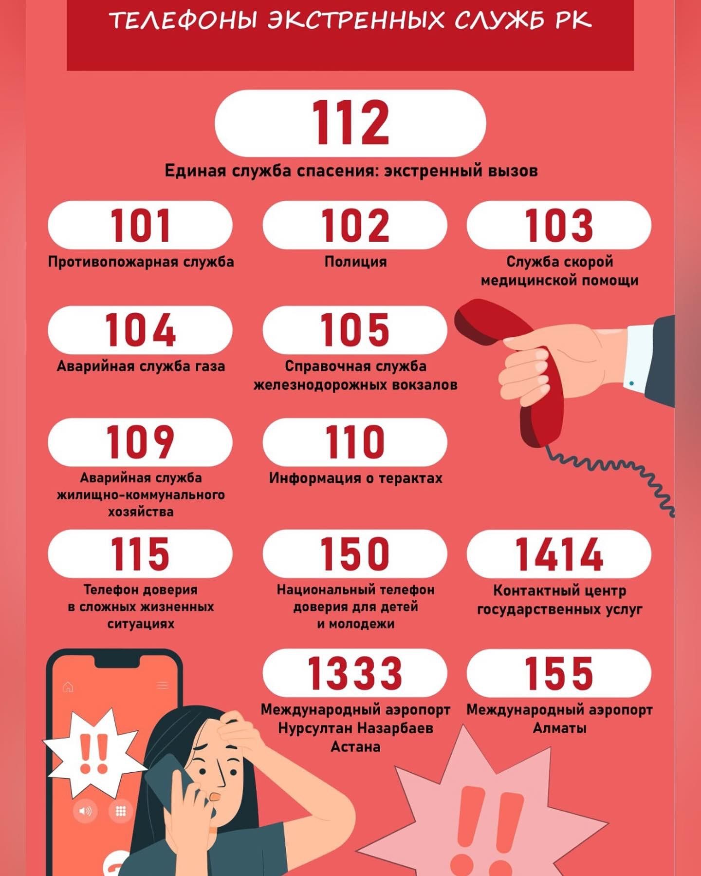 ҚР-сының жедел қызметтерінің телефондары