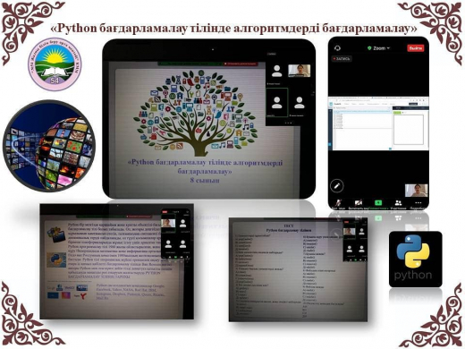 8 сынып оқушыларымен "Python бағдарламалау тілінде алгоритмдерді бағдарламалау" тақырыбында ашық сабақ өтті.