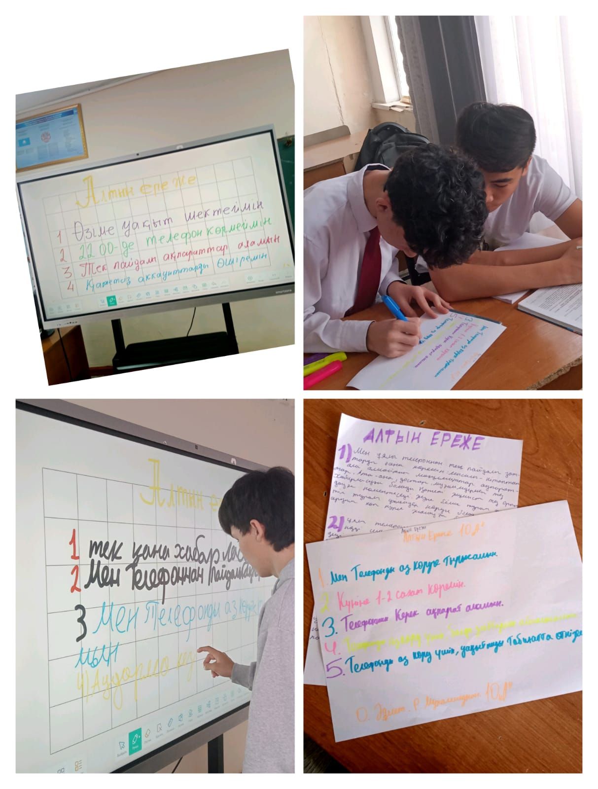 Члены дебатного клуба «Патриот» разработали «Золотые правила» эффективного использования мобильных телефонов среди учащихся. Они провели анкетирование среди учеников 8–10 классов, на основе которого составили правила и поделились своими идеями.