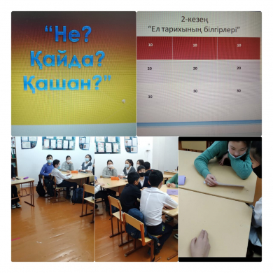 Тарих толқынында" тарихи сауаттылық аптасы аясында 8"а" сыныбында Не?Қайда?Қашан? интеллектуалды ойын өтті.