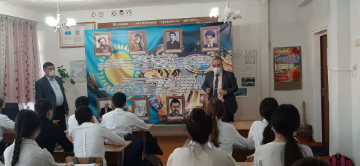 22. 12. 2021.г.в 9 "А" и "Ә" классах прошёл внеклассный открытый урок на тему : "Жить ему слову в веках" ( М. Жумабаев).Цель мероприятия:показать роль и значение творчества Магжана Жумабаева.Магжан Жумабаев, как истинный патриот своей Родины.Мпроприятие провели:Учитель русского языка и литературы:Алтынбеков Муратбек Кенесович и учитель истории Сатпенов Алтай Болатович.