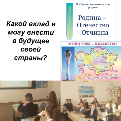 Қаңтардың 16 күні 8"Д" сыныбында "Мен елімнің ертеңімін" атты сынып сағаты өтті.Сынып сағаты барысында Отан, отансүйгіштік, мен елімнің ертеңі үшін не істей аламын атты сұрақтарға жауап бердік.