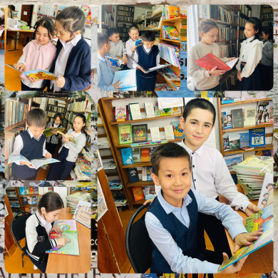 “Оқуға құштар мектеп” жобасы аясында 4 “Ә” сынып оқушылары қоңырау уақытын мектеп кітапханасында өткізіп, оқыған ертегілерімен бөлісуде