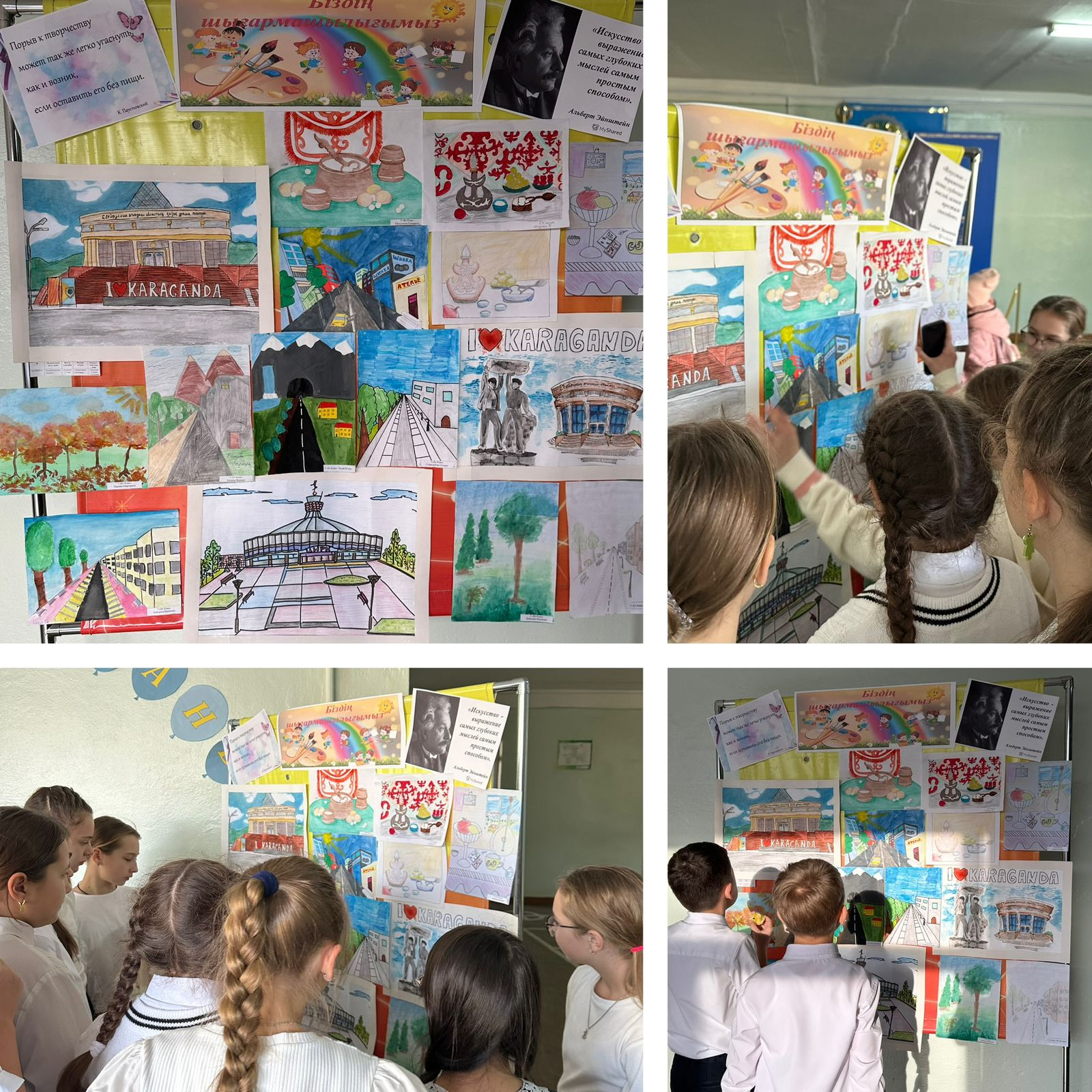 Эстетикалық сауаттылық апталығы аясында мектеп оқушыларының "Біздің шығармашылық" атты балалар сурет көрмесі өтуде