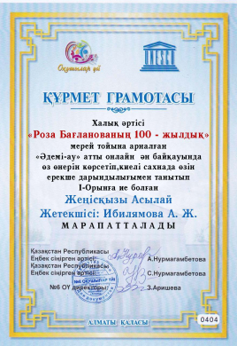 Байқауларға қатысу балаға өзінің ерекше шығармашылық әлемін қалыптастыруға көмектеседі. Кішкентай бала үшін бұл тәжірибе оқудың алғашқы кезеңдерінде пайдалы қосымша болады, бұл кезде баланың әлемді танудың алғашқы дағдылары ғана емес, сонымен бірге оның кейінгі өмірінде өнерге деген көзқарасы қалыптасады. Кез – келген байқау, фестиваль-бұл тек күш сынағы ғана емес, сонымен бірге баланың дүниетанымын кеңейту, оған қатысудан, қарым-қатынастан және қойылымнан өзін-өзі көрсетуге мүмкіндік беру. Жеңістердің жарықтығы мен жеңілістердің ащы болуы таңдалған қызмет түрі бойынша сабақтарды жалғастыруға, өзінің артықшылығы мен шеберлігін дәлелдеуге деген ұмтылыстың қосымша себебі болуы мүмкін. «Роза Бағланованың 100-жылдық» мерей тойына арналған «Әдемі-ау» атты онлайн ән байқауында I орынға ие болған Жеңісқызы Асылайды және эстрадалық вокал сыныбының оқытушысы Ибилямова Аяулым Жумагалиевнаны құттықтаймыз.