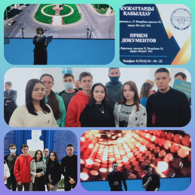 2022 жылдың 25 қарашасы А.Сағынов атындағы ҚарТУ-да «Қарағанды қаласының мектеп түлектеріне арналған университеттің ашық есік күні» өтті.Осы шара барысында 11-сынып оқушылары қатысты. Онда университет басшылығымен және олардың қонақтарымен кездесу өтті. Университет бойынша экскурсия, «Жас Орда» студенттер бірлестігі мүшелерінің қатысуымен концерттік бағдарлама болды. Сапар мақсаты: студенттердің кәсіби үлгілері.
