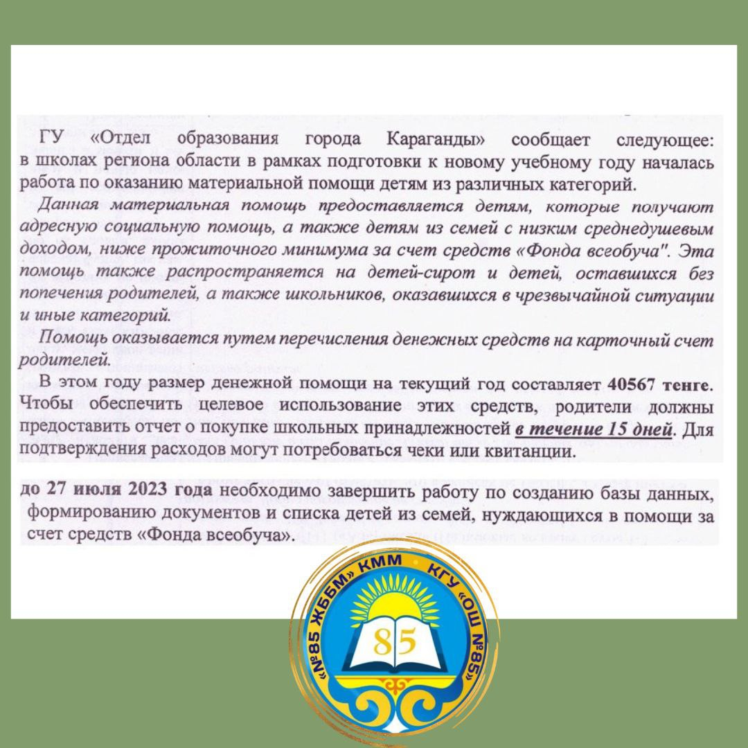 ГУ "Отдел образования города Караганды" сообщает следующее: