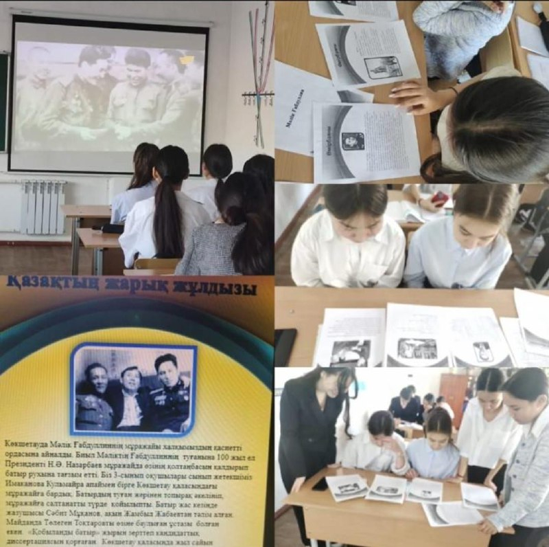 Ел басына күн туғанда етігімен су кешкен ата ағаларымыз бүгінгі күні біз үшін аңыз адамдар. Сондай батырларымыздың бірі , Кеңес Одағының Батыры Мәлік Ғабдуллин туралы оқушылар деректер жинап, фильм көрді. Шығармаларымен танысты. #біртұтастәрбие
