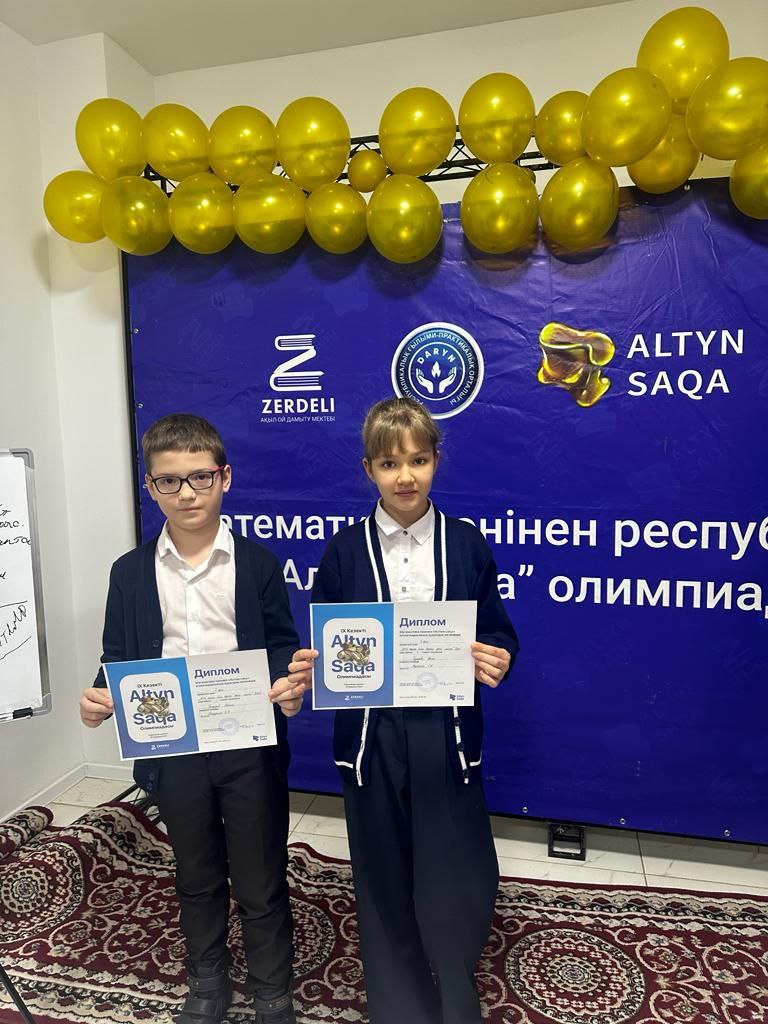 Победители городского тура Олимпиады по математике "Алтын Сақа" ученик 4-Б класса Болдырев Максим -1 место и ученица 4-А класса Бушуева Арина-2 место. Поздравляем победителей!!!