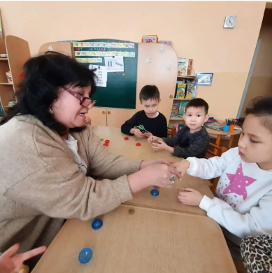 Психолог Тукенова Б.Ж. мектепалды даярлық «Қарлығаш» тобымен мектепке дейінгі жастағы бала тілін түзетудегі ұлттық құндылықпен байланыстыра отырып Су-Джок терапиясын қолдана отырып бүлдіршіндермен жұмыстар жүргізді. Мақсаты: балалардың барлық дене мүшелерін емдік жолы,тіл кемістігін түзету,саусақ моторикасын, ойлау қабілеттерін дамыту.