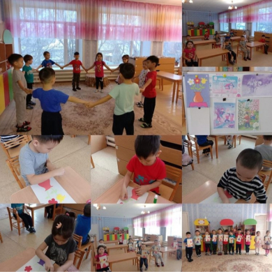 №4 "Айгөлек" мектепалды даярлық тобы жапсыру сабағы өткізілді. Балалар құмырадағы гүл тақырыбында жапсыру жұмысын жасады.