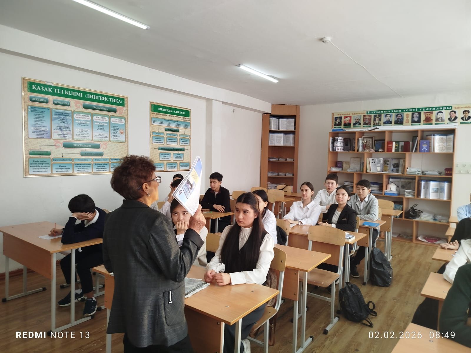 Кездесу барысында оқушылар осы университетте оқып-үйрену арқылы алуға болатын мамандықтар туралы мәлімет алды. Оқытушы оқушылар мен сынып жетекшілерінің сұрақтарына жауап берді.