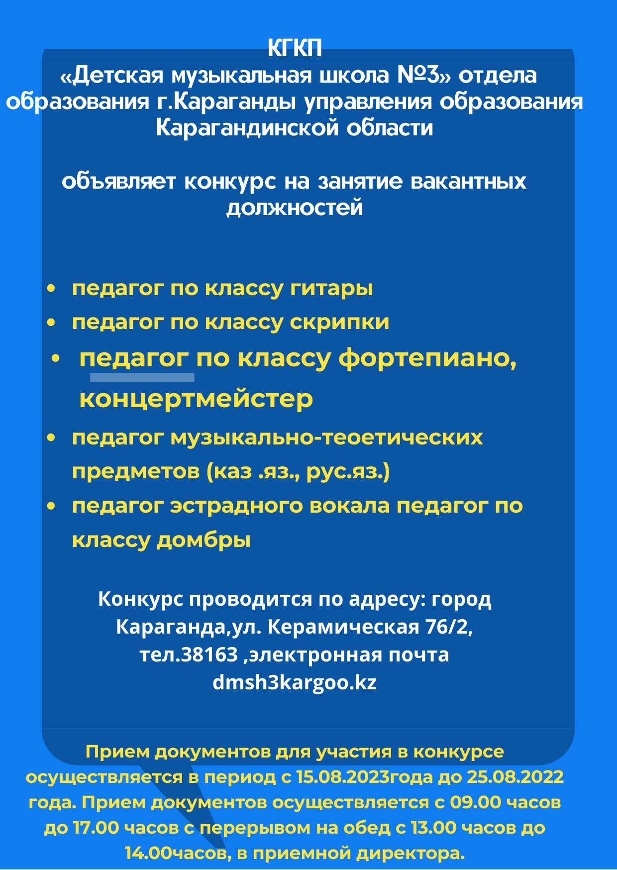 Конкурс проводится по адресу: город Караганда,ул. Керамическая 76/2,