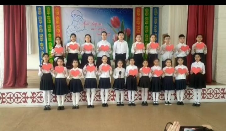 8 наурыз Халықаралық әйелдер күнімен - филиал оқушылары Үштөбе мұғалімдерің құттықтады. Жетекшісі Ж.С.Мукушева.
