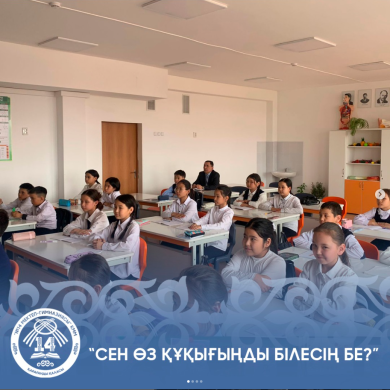 14.04.2023 күні 5 “Ә” сыныбында “Сен өз құқығыңды білесің бе?”атты Бала құқығы заңының 3-ші тармағы,16-шы бабы бойынша сынып сағаты өтті. Тәжірибе жинақтаушы: Володя Нурболат
