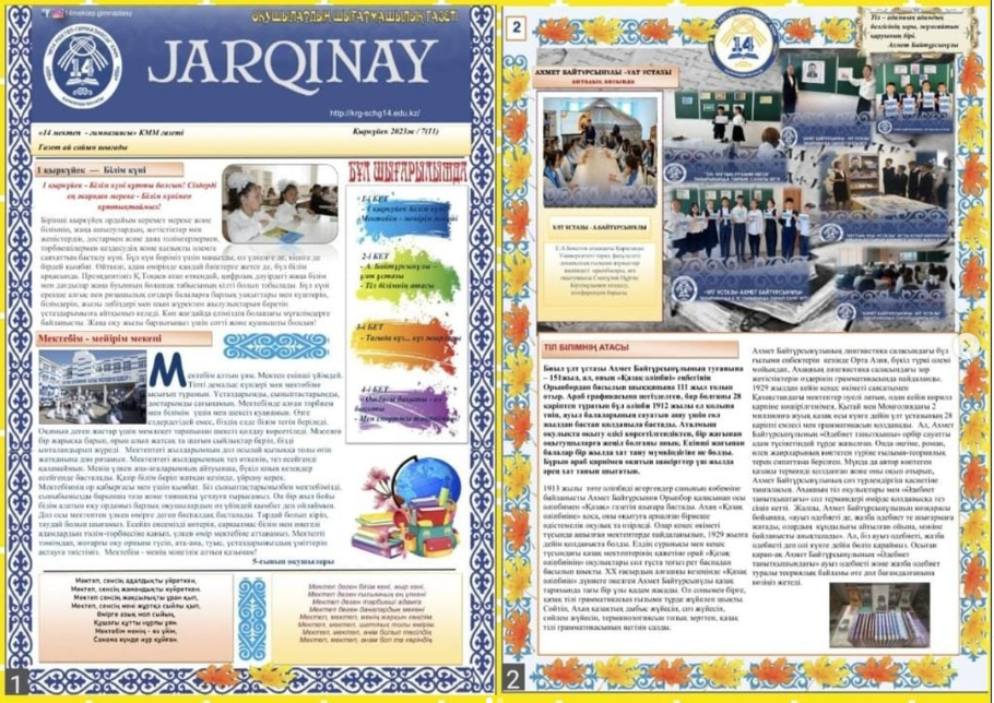 "JARQINAY" 7(11)2023ж Мектепішілік оқушылар шығармашылық газетінің кезекті саны жарыққа шықты. Оқи жүріңіздер! PDF форматындағы эл.нұсқаны әр сыныпқа таратылды.
