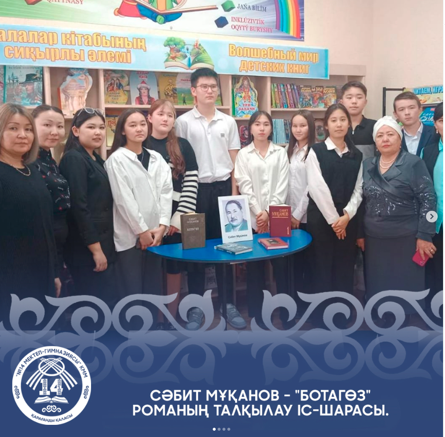 "М.Әуезов атындағы орталықтандырылған кітапханалар жүйесі"КММ #12 балаларға қызмет көрсететін кітапхана бөлімшесінің ұйымдастыруымен мектеп-гимназия кітапханасының 10-сынып оқырмандары Сәбит Мұқановтың "Ботагөз" романың талқылау іс-шарасына белсенді атсалысып, қатысып келді.