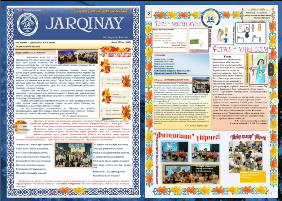 "JARQINAY" 8(12)2023ж Мектепішілік оқушылар шығармашылық газетінің кезекті саны жарыққа шықты. Оқи жүріңіздер! PDF форматындағы электронды нұсқасы әр сыныпқа таратылды.