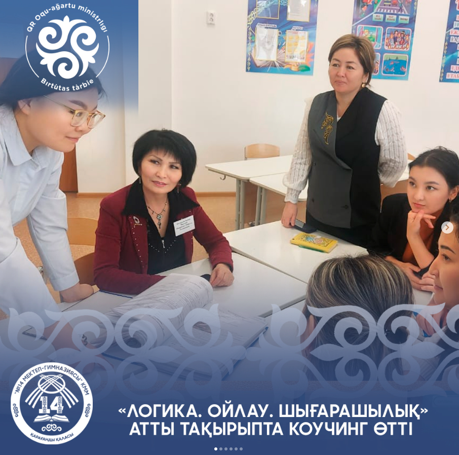 «№14 мектеп-гимназиясы» КММ «Математика – ғалымдар патшалығы» Математика сауаттылығы апталығының 3-күнінде бастауыш сынып мұғалімдерімен «Математикадан стандартты емес есептерді шығару. «Логика. Ойлау. Шығарашылық»» атты тақырыпта коучинг өтті. Коучингті