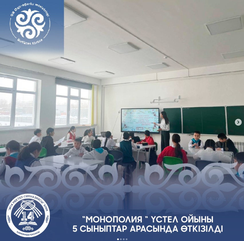 “Қаржы әлемі” қаржылық сауаттылық аптылығының аясында “Монополия “ үстел ойыны 5 сыныптар арасында өткізілді . Оқушыларға қаржыны есептеу , банк кредиті туралы есептер шығартылды