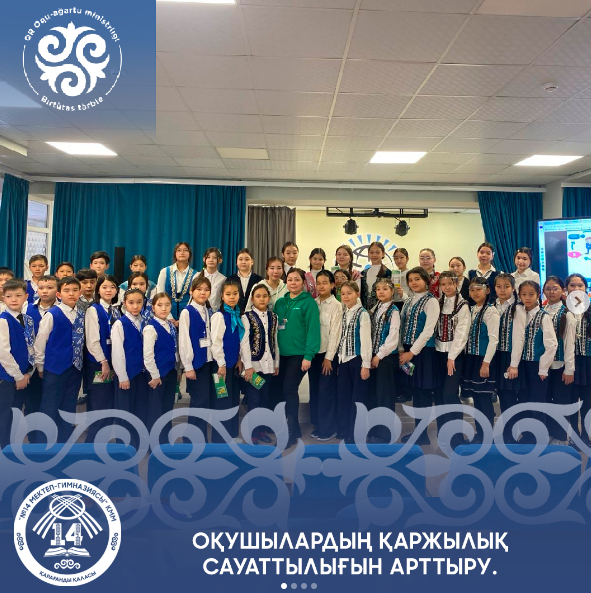 "Қаржы сауаттылығы" апталығы аясында 5-7 сынып оқушыларымен "Халық банкі" аға менеджері Шоринова Анармен кездесу өтті. Мақсаты: оқушылардың қаржылық сауаттылығын арттыру.