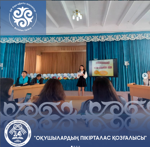 Жалпыұлттық мәдени-білім беру жобасының тұжырымдамасын іске асыру барысында "Оқушылардың пікірталас қозғалысы" қалалық семинарға мектебіміздің "Серпін" командасы қатысып, алғыс хатпен марапатталды. Дебат жетекшісі:Шошимова Д.Т.