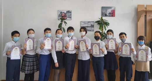 Мейрам Медина - 2 место по физике, Дәулет Айбар - 3 место по физике, Есенжол Дильназ - 1 место по русскому языку и литературе, Амангелді Дария - 2 место по русскому языку и литературе, Искакова Нарқыз - 2 место по казахскому языку и литературе, Әлжан Аянат – 1 место по английскому языку!