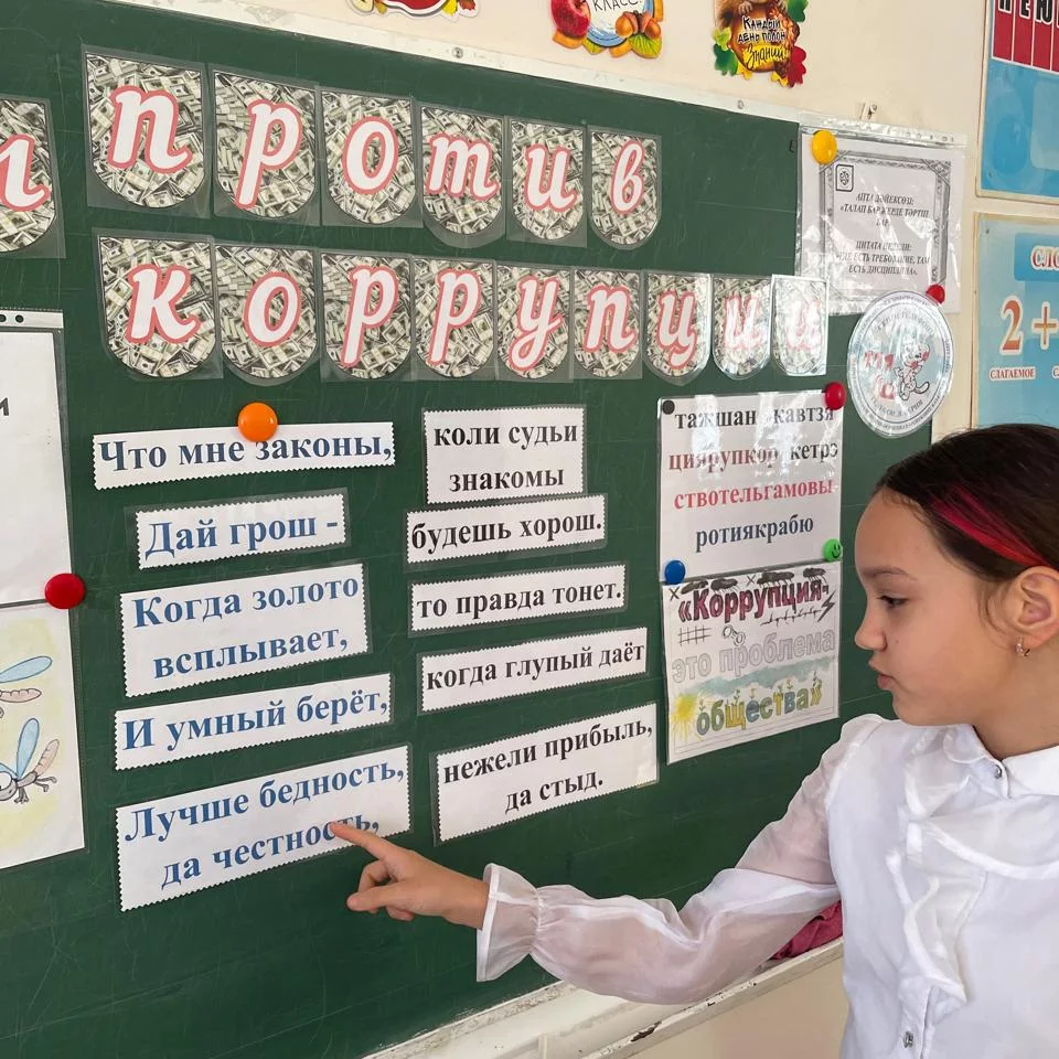 13 января в 4Б прошёл классный час на тему «Мы против коррупции!». Ребята приводили примеры коррупционных действий из жизни. Использовали народные пословицы и поговорки. Пришли к выводу, что коррупция в разных своих проявлениях- это зло! И с ним нужно бороться!